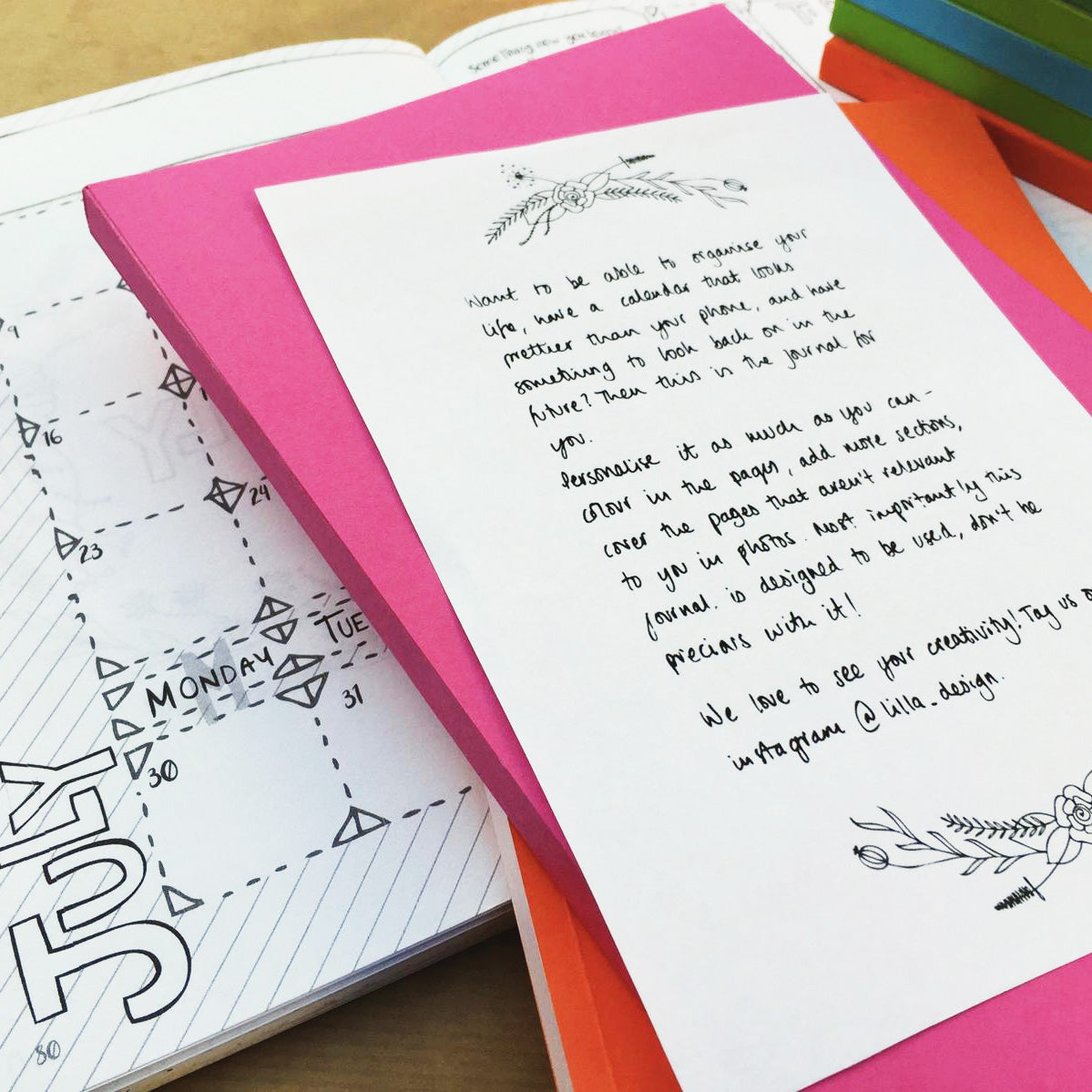 I've always had a passion for design, drawing, and doodling which lead me to a career as an interior architect, But it was love for creating handmade gifts for friends and family that was the true starting point for LILLA. It all began in 2017 when I gifted a hand drawn Bullet Journal to my sister. She took it to cafes, on holidays, and for day trips to fill in the pages and people noticed and commented on it. I started getting requests from friends and strangers for their own version.